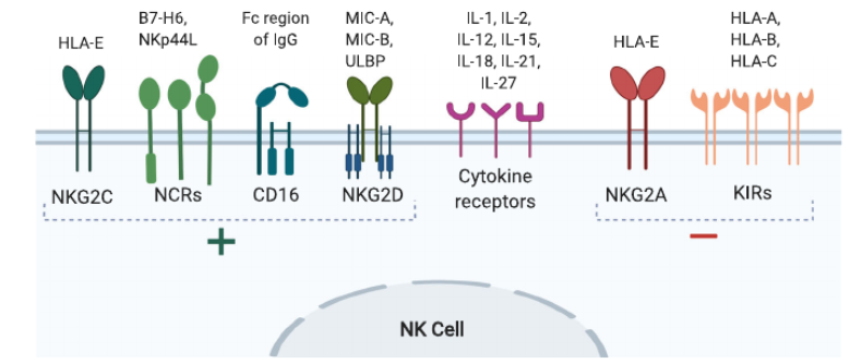 NKG2A是單跨膜的II型膜糖蛋白的C型凝集素超家族的成員,包含胞內(nèi)域、跨膜域和細(xì)胞外凝集素樣結(jié)構(gòu)域。胞內(nèi)域有兩個(gè)ITIMs,參與抑制信號(hào)轉(zhuǎn)導(dǎo)。NKG2A是自然殺傷細(xì)胞(NK)和CD8+ T細(xì)胞的關(guān)鍵免疫檢查點(diǎn)。NKG2A與CD94作為異二聚體表達(dá),CD94也屬于C型凝集素超家族,NKG2A/CD94異二聚體受體的配體是非經(jīng)典MHC I類分子。結(jié)合后,NKG2A/CD94向NK細(xì)胞和CD8+ T細(xì)胞傳遞抑制信號(hào),阻斷NKG2A可有效釋放這些細(xì)胞毒性淋巴細(xì)胞的功能。